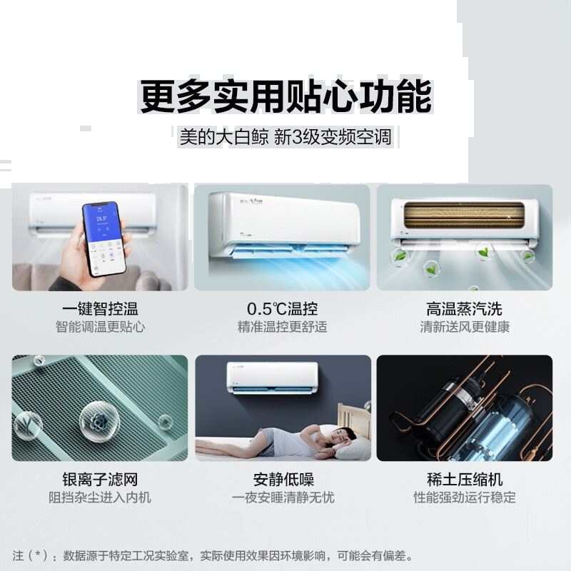 • 美的KFR-35GW/N8JDA3 新能效 大白鲸 变频冷暖 1.5匹壁挂式卧室空调挂机