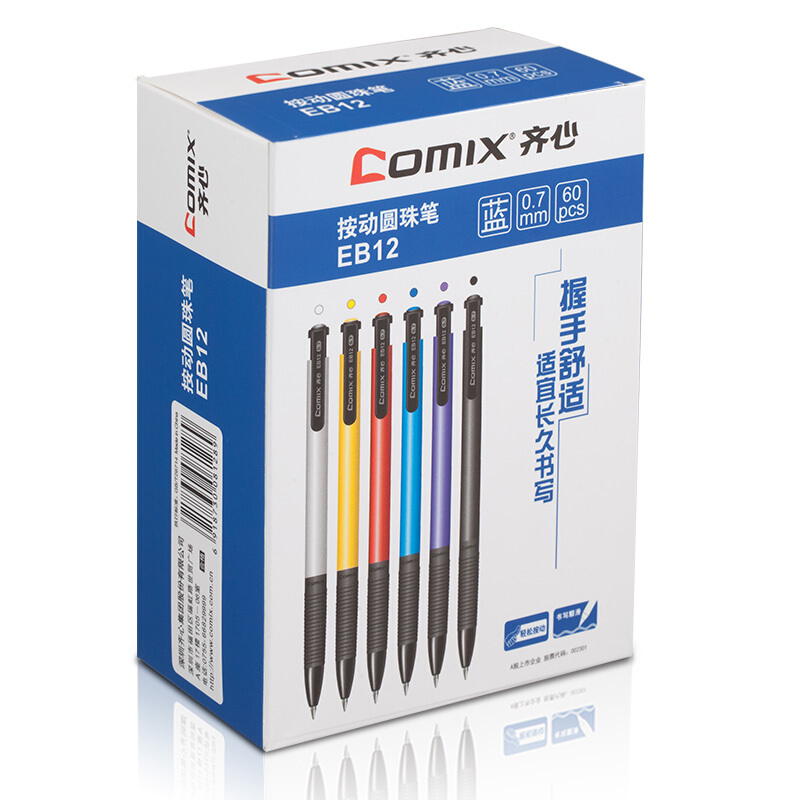 齐心(COMIX) 60支装按动圆珠笔0.7mm 蓝色 办公文具 EB12
