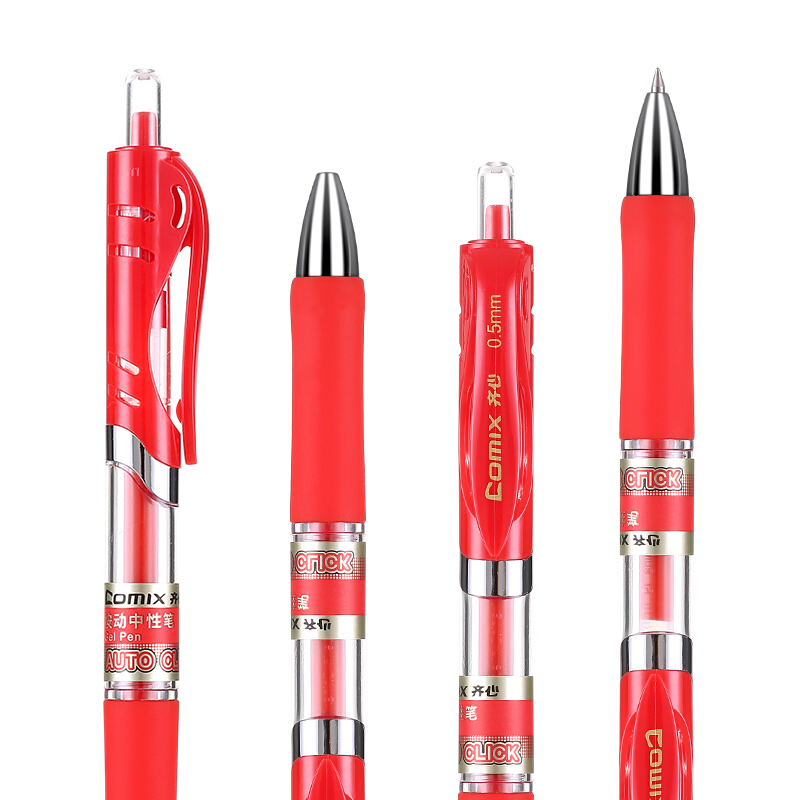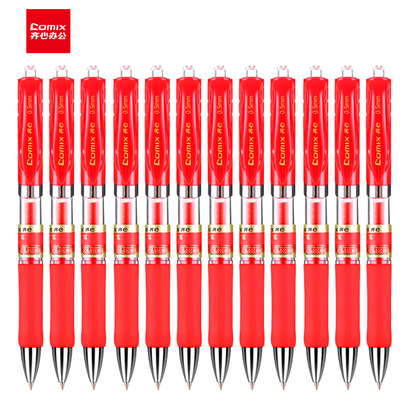齐心(Comix)0.5mm红色子弹头按动中性笔办公签字笔水笔 12支/盒 EK35
