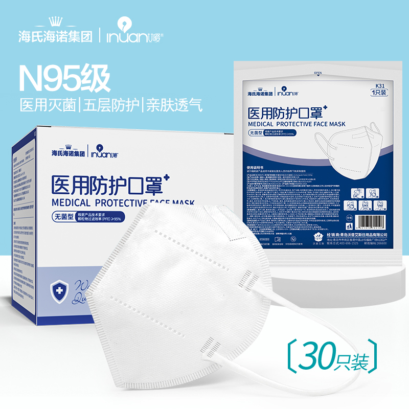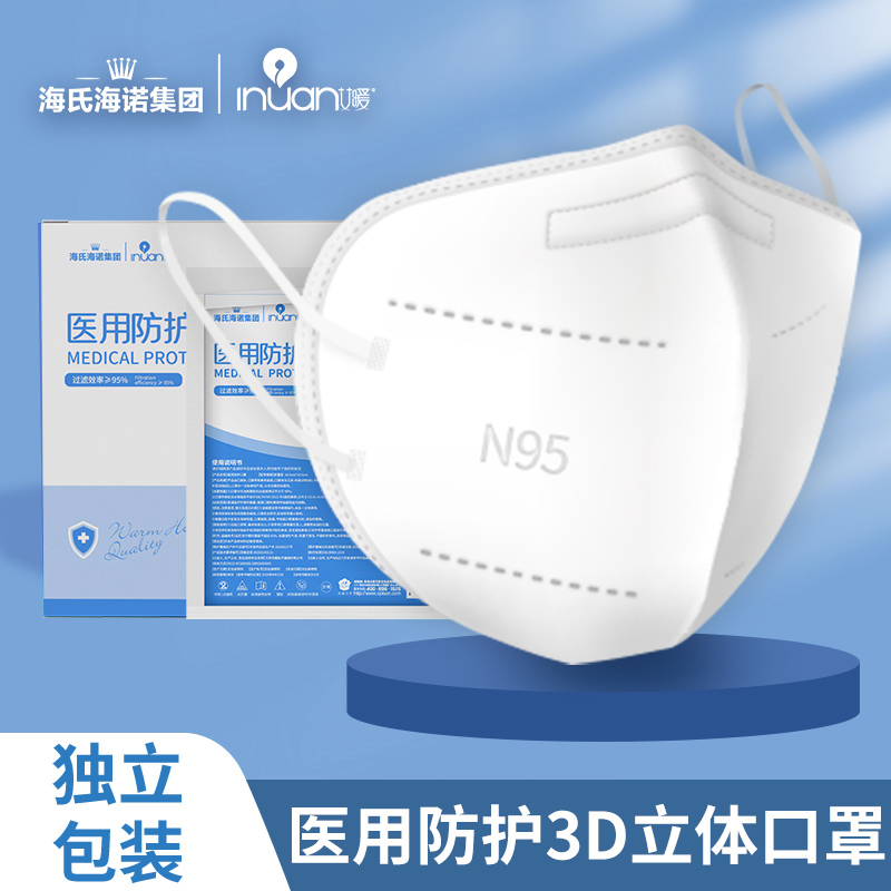 • 海氏海诺艾暖 N95医用级防护口罩 无菌五层一次性医用口罩双层熔喷布独立包装 30只/盒GB19083-2010