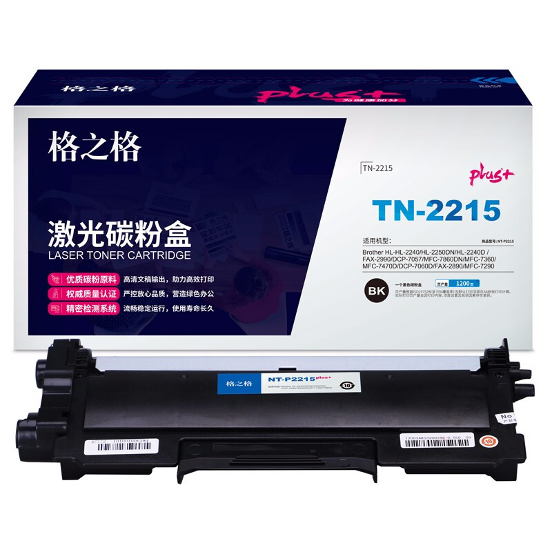 - 格之格TN-2215墨粉盒NT-P2215plus+适用兄弟HL-2240 2240D 2250DN DCP-7060 7065DN MFC-7860D打印机墨粉盒