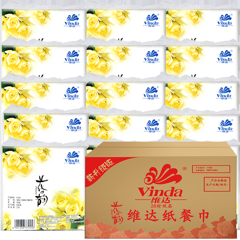 • 维达(Vinda)V1028维达花之韵餐巾纸100抽(60包/箱)