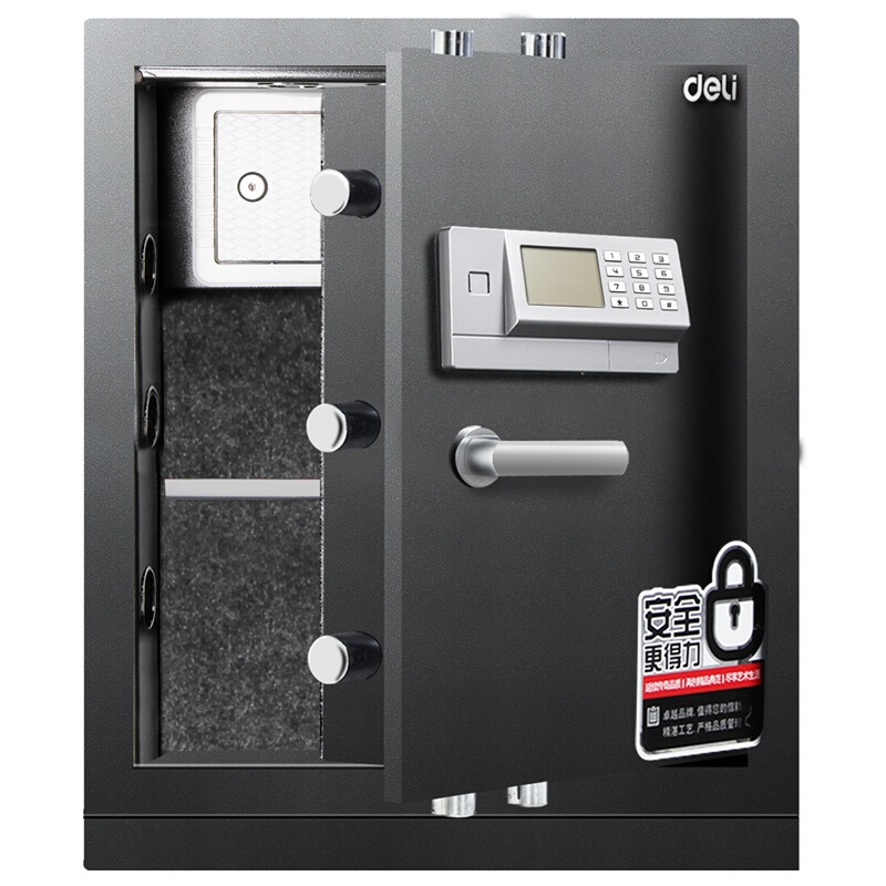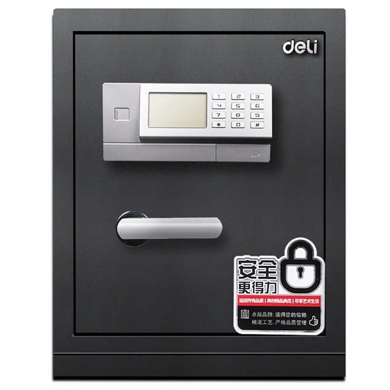 得力(deli)保险柜 高48CM 电子密码保管箱 办公家用保险柜 H480 (银灰) 3653A