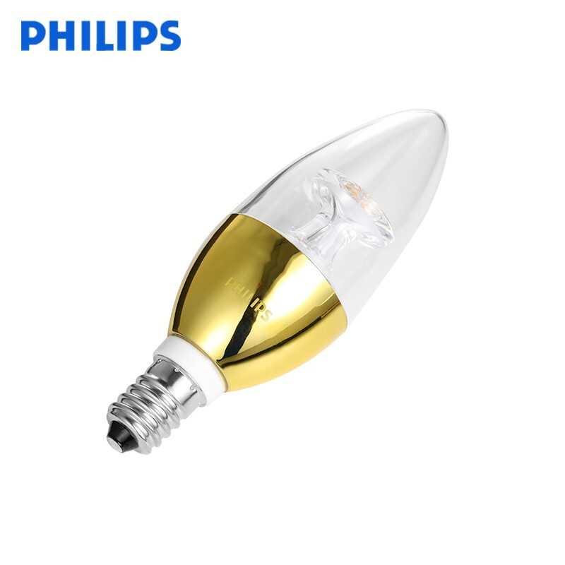 飞利浦照明(PHILIPS)LED灯蜡烛灯尖泡拉尾泡家用暖光小螺口E14 摇曳泡椒泡 尖泡5w-金底黄光-E14螺口