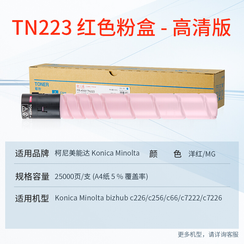 - 天威 TN-223M 红色大容量碳粉 柯尼卡美能达Bizhub C266 C256墨粉盒C7222 C7226复印机硒鼓