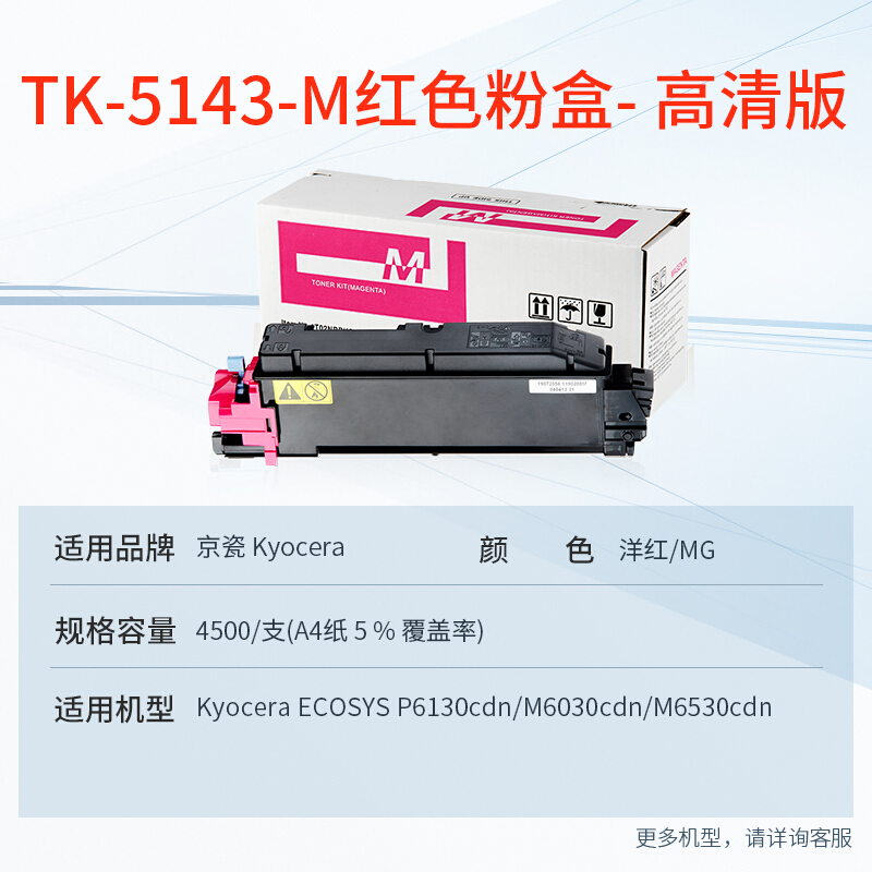 - 天威 TK-5143M粉盒 红色适用京瓷KYOCERA ECOSYS P6130cdn墨盒M6030cdn碳粉M6530cdn复印机粉盒 粉筒粉仓