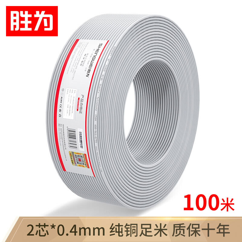 • 胜为(shengwei)电话线2芯单股无氧铜线芯0.4mm座机/传真机电话延长线连接线100米 TEC-1100