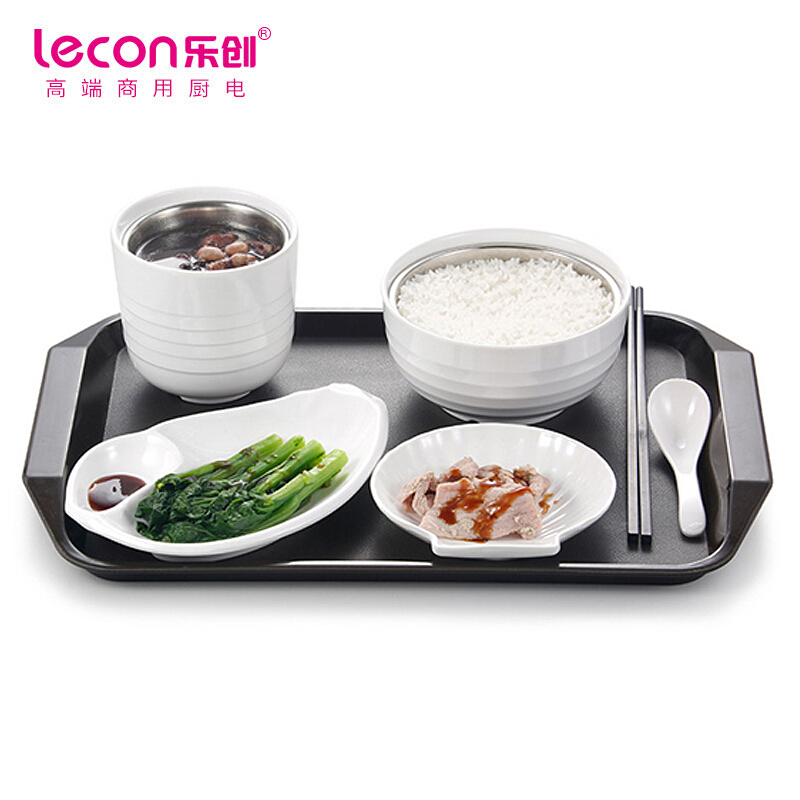 创(lecon)商用蒸饭餐具 白色套装3(海螺蝶+贝壳碟+饭盅+汤盅+勺子+筷子+托盘) LC-J-CJ02