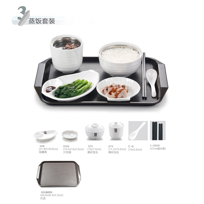 • 创(lecon)商用蒸饭餐具 白色套装3(海螺蝶+贝壳碟+饭盅+汤盅+勺子+筷子+托盘) LC-J-CJ02