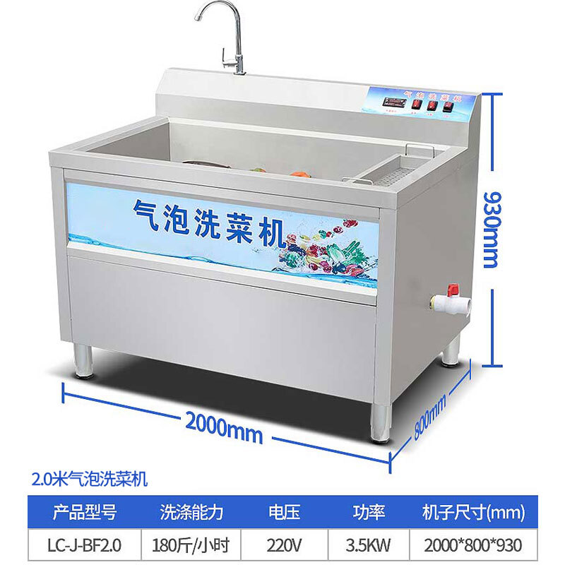 - 乐创 lecon 商用果蔬清洗机2.0米大型厨房设备气泡洗菜机 LC-J-BF2.0