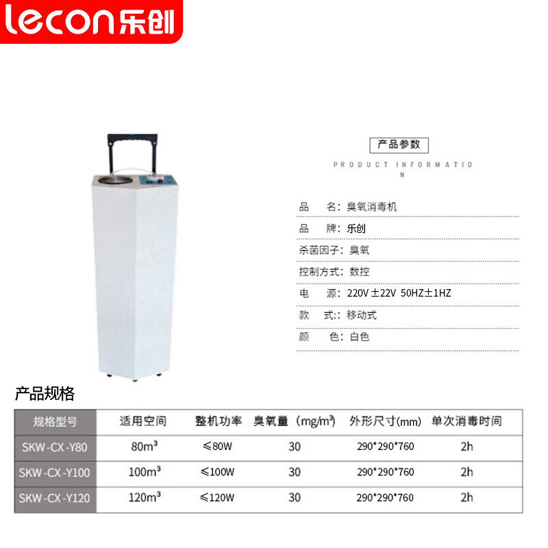 • 乐创 lecon臭氧消毒机100平方米移动式消毒机臭氧发生器空气消毒机 SKW-CX-Y100