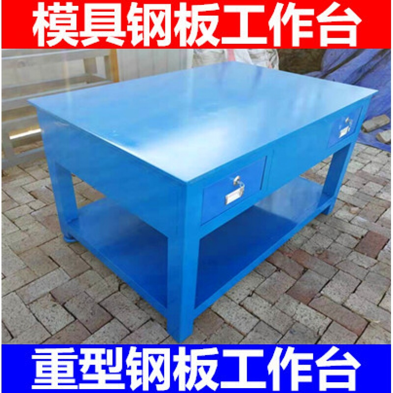 钳工操作台重型铁板平台车间模具维修桌钢板工作台虎钳装配飞模台 600*900*800mm二抽带底板