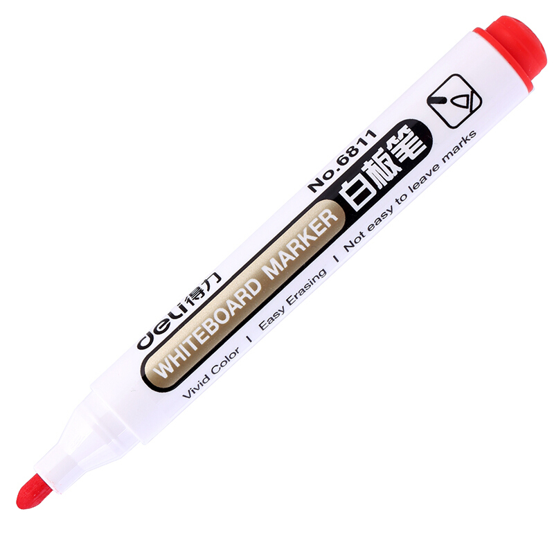 • 得力 6811 办公会议白板笔 可擦易擦红色 10支/盒