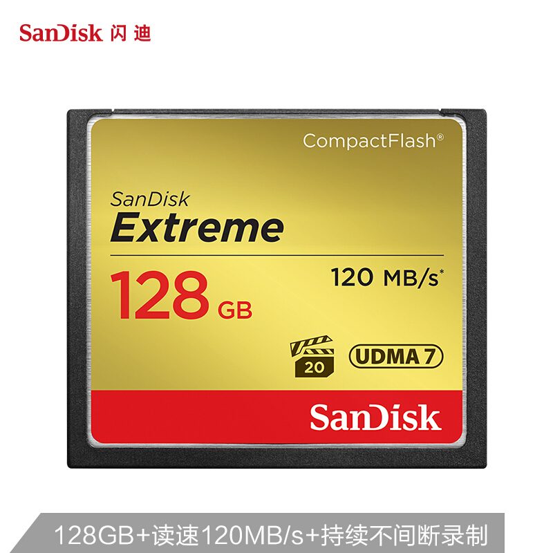 闪迪(SanDisk)128GB CF(CompactFlash)存储卡 UDMA7 至尊极速版 读速120MB/s 写速85MB/s