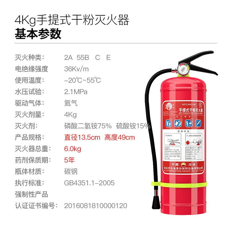 • 干粉灭火器灭火瓶4公斤手提式灭火器-中石油华消HX-4KG