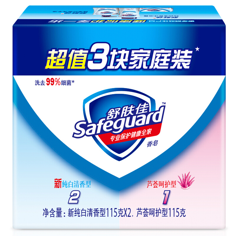舒肤佳香皂混合三块促销装115gX3(纯白清香+柠檬清新+芦荟呵护)(温和洁净 新老装随机发货)