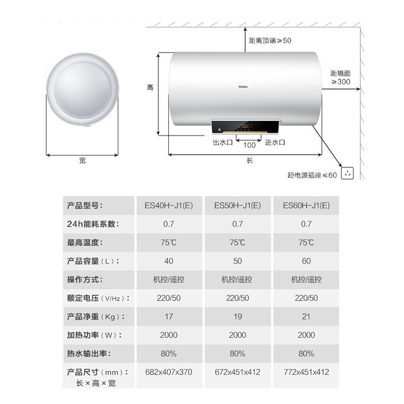 • 海尔 电热水器 ES40H-GZ1电热水器 40L 二级能效 2000w 白色(单位:个)