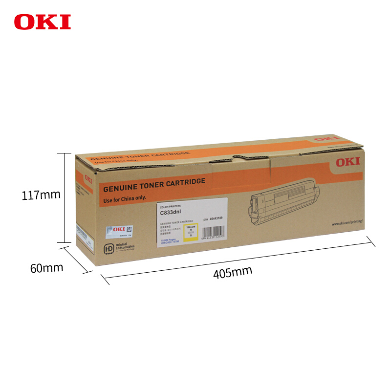 OKI C833dnl 黄色墨粉粉仓碳粉粉盒 打印机耗材10000页货号46443109