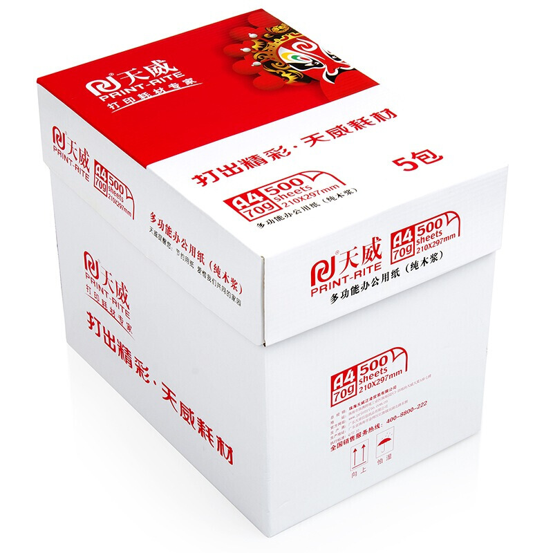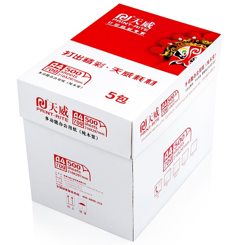 • 天威A4复印纸 70g 一箱(5包)500张/包