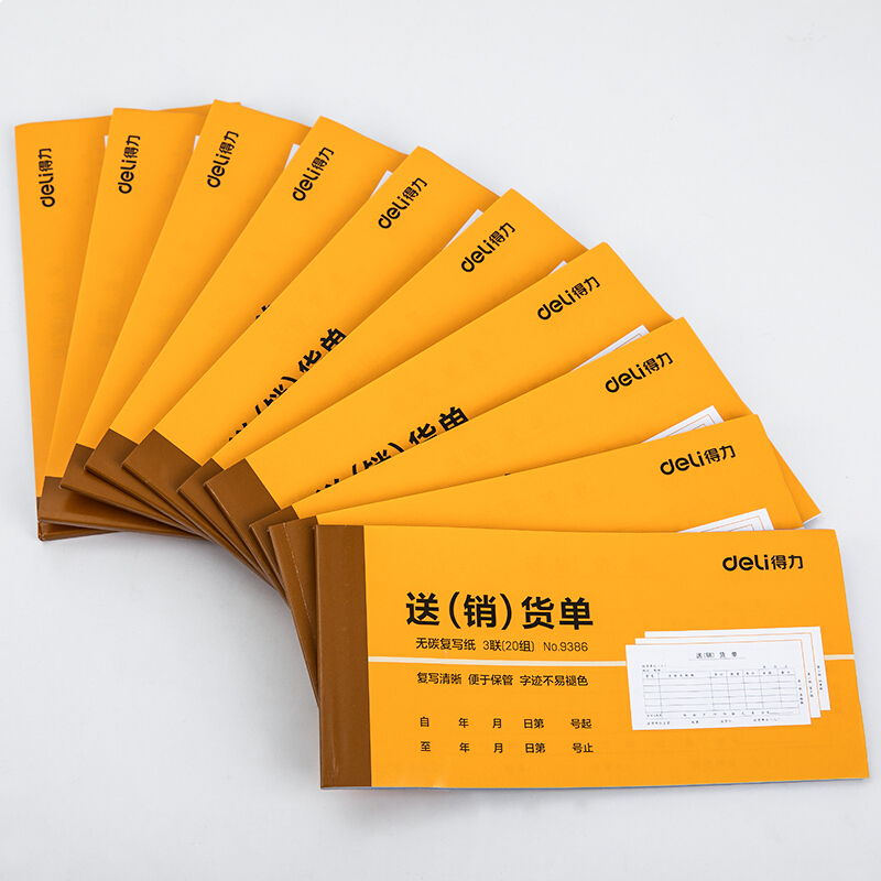 得力9386 无碳复写三联送(销)货单