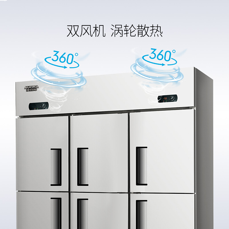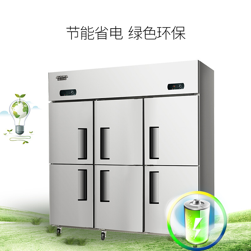 • 澳柯玛VF-1300D6 立式全冷冻冰柜 1300升商用六门厨房冰箱 不锈钢