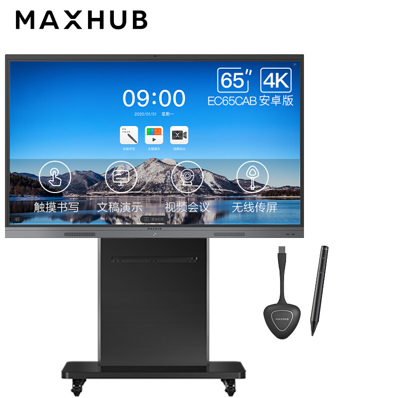 - MAXHUB(EC65CAB+传屏器+智能笔+支架) 视频会议大屏解决方案65英寸会议平板4件套装