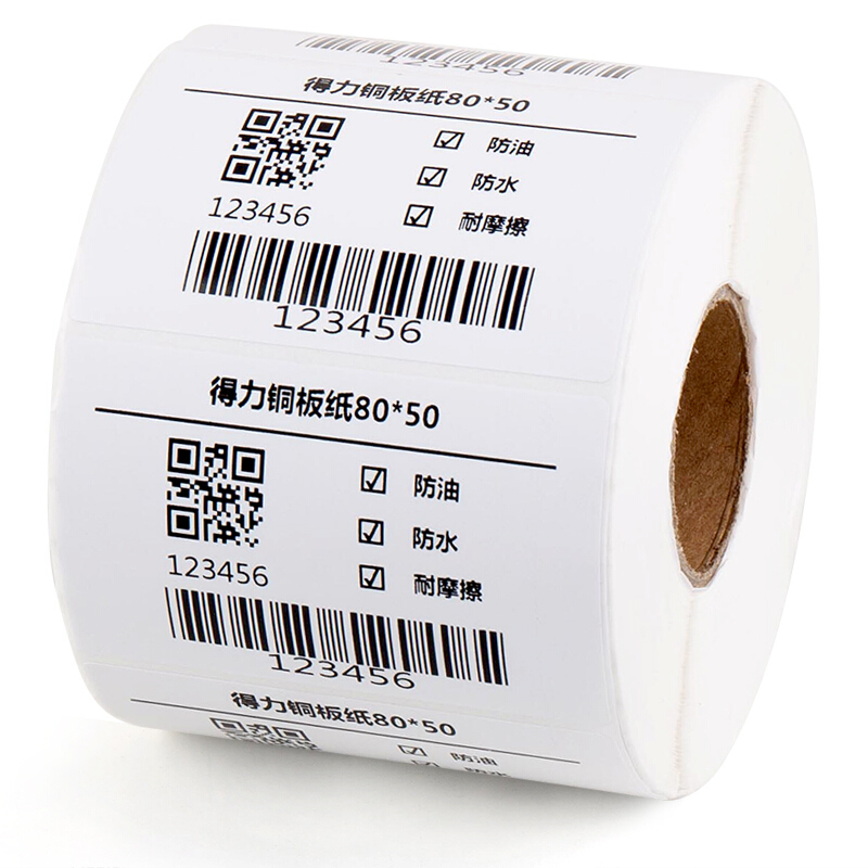 得力(deli)通用铜版纸不干胶标签纸/条码纸/打印贴纸 热转印打印纸 铜板卷纸空白贴纸 80*50mm 1000张/卷(11914)