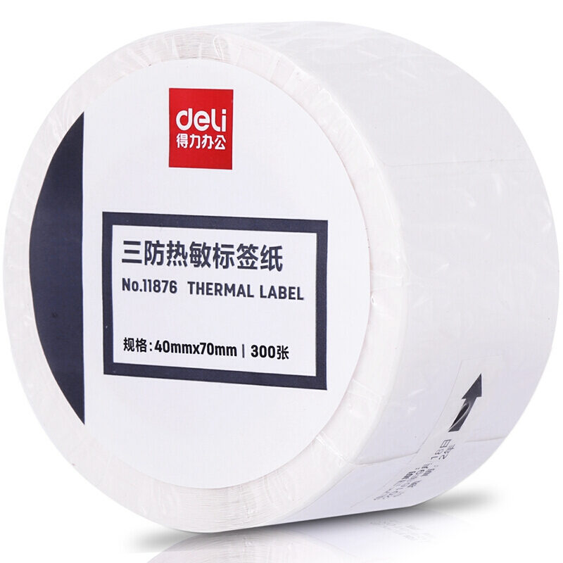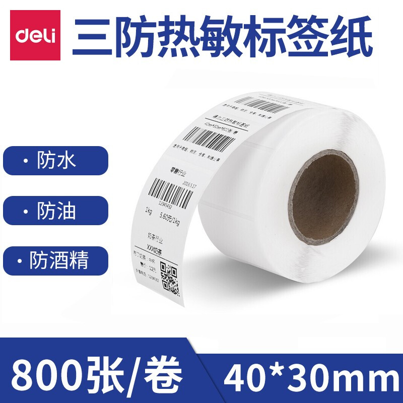 得力(deli)三防热敏标签纸 不干胶打印纸 条码纸热敏纸 40mm*30mm*800张 11873