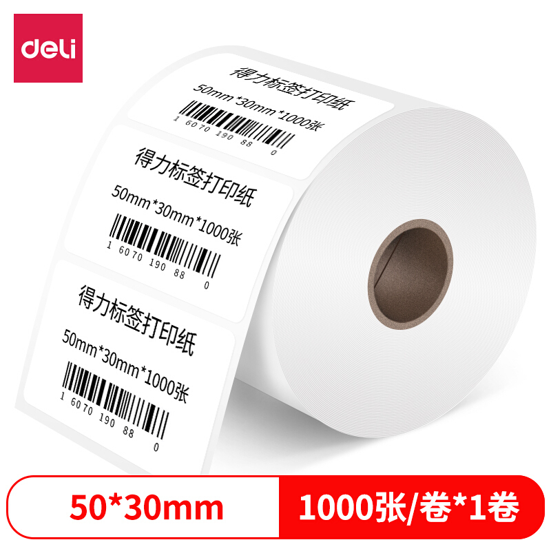 • 得力50*30mm热敏标签打印纸1000张*1卷12003