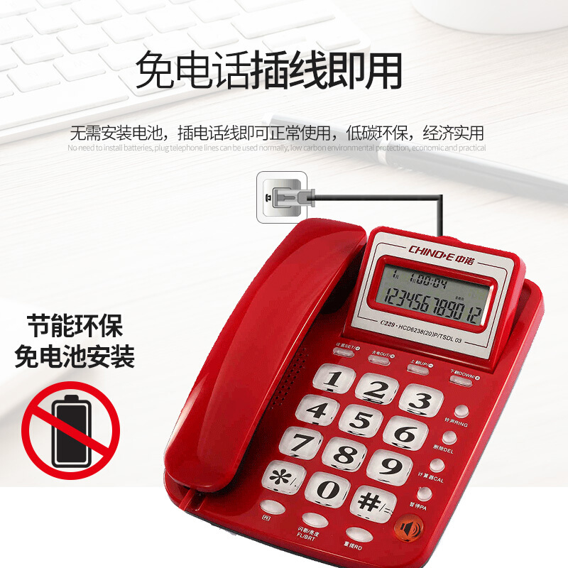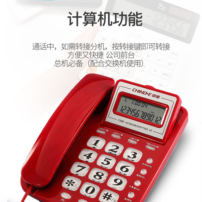 中诺(CHINO-E) C229 可摇头/免电池/计算器功能电话机座机办公/家用座机电话/固定电话座机 红色