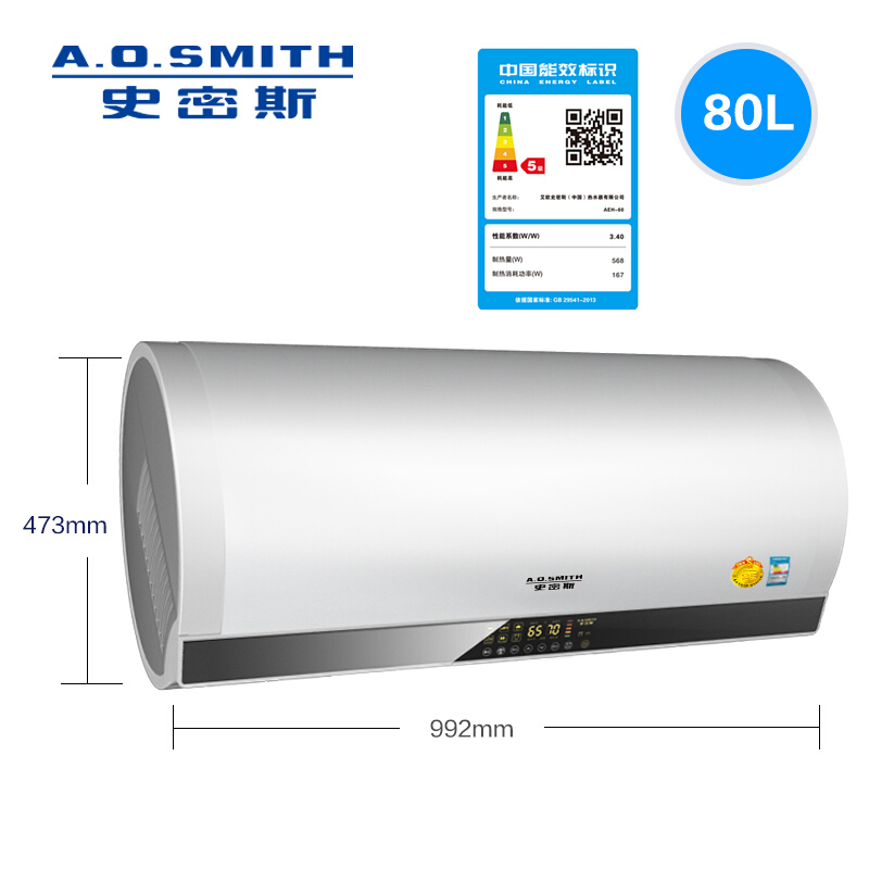 史密斯(A.O.Smith) 80升空气能电热水器 金圭内胆 带除湿 AEH-80家电