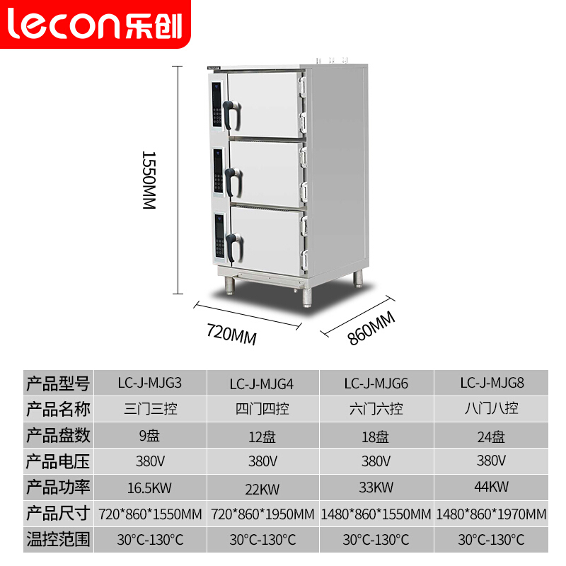 - 乐创(lecon) 商用八门智能电脑款24盘高温蒸柜电热米饭机馒头箱蒸包子炉蒸菜车电蒸箱 LC-J-MJG8