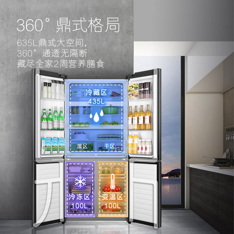 - 卡萨帝(Casarte)原石系列 635升四开门十字对开门冰箱 一级能效 无霜变频 三系统 暮云黑 BCD-635WVPAU1
