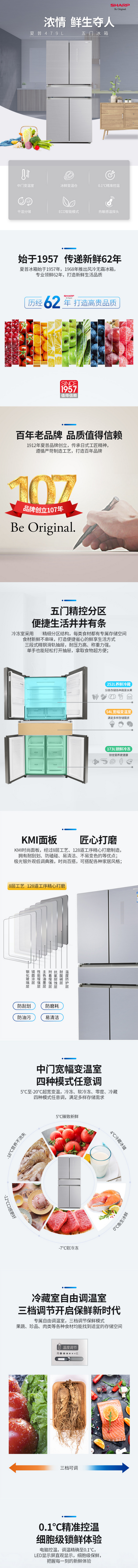 - 夏普(SHARP)479L升多门五门风冷无霜干湿分储节能低音大容量速冷速冻干湿分储节能省电家用电冰箱 BCD-479WWCE-S银色