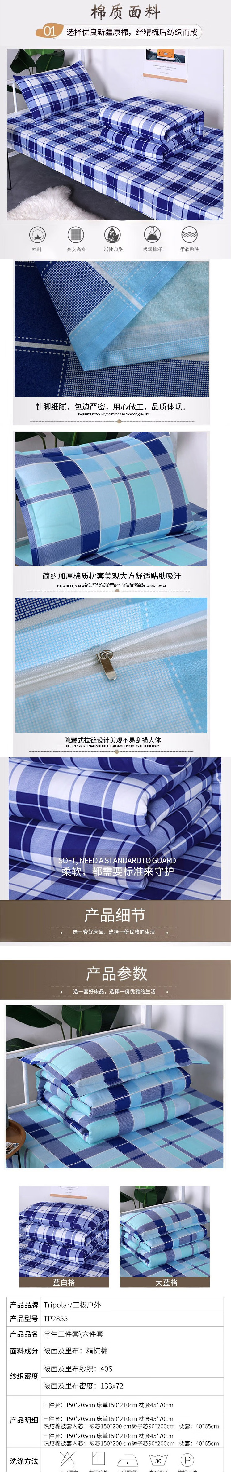 • 三极户外Tri-polar 精梳棉40纱支三件套 床单+被套+枕套 蓝白格 TP2855