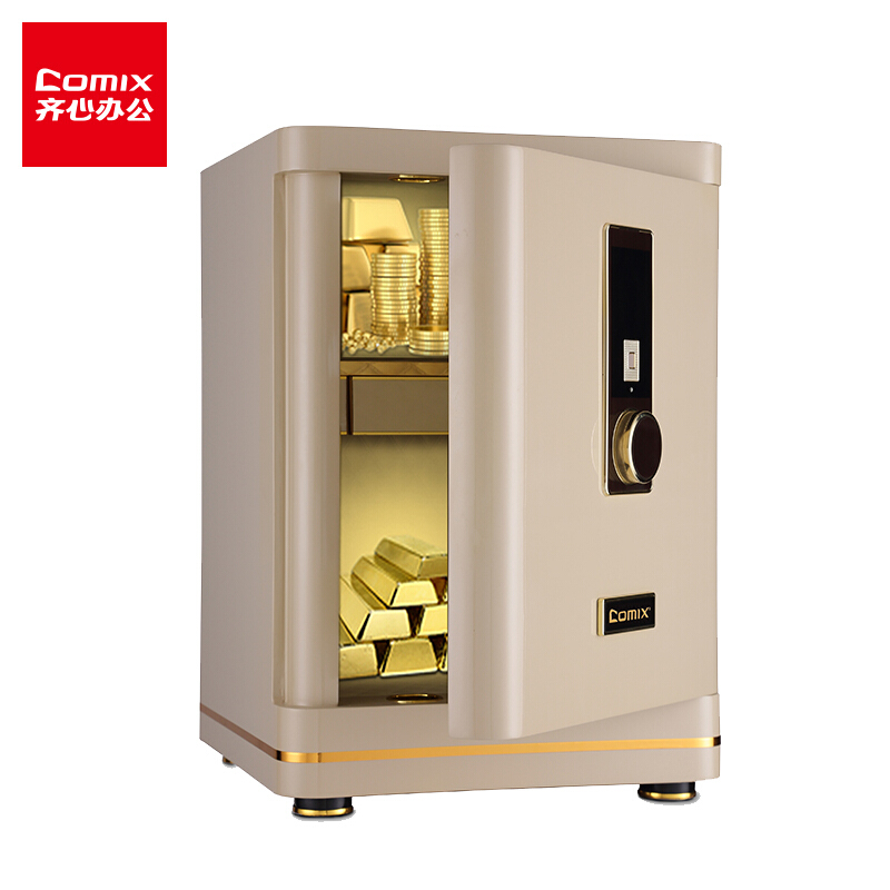 • 齐心(Comix)保险柜 高60cm全钢防盗指纹密码保险箱保管箱 办公家用防盗保管柜FDG-A1D-60T乳白