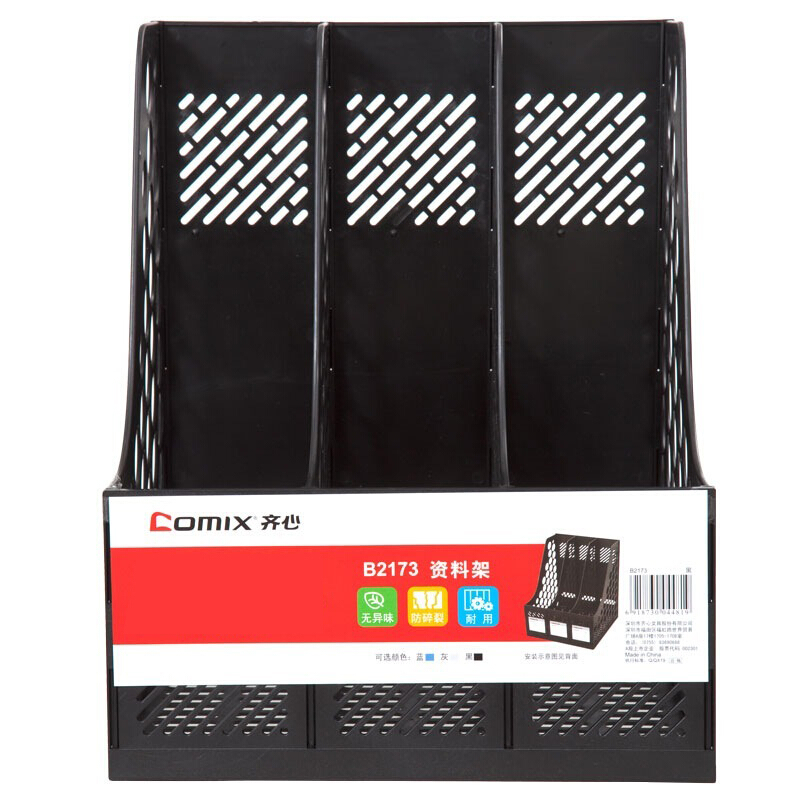 齐心(Comix) 三联桌面文件框 三栏带标签稳固文件栏/文件筐/资料框 黑色B2173