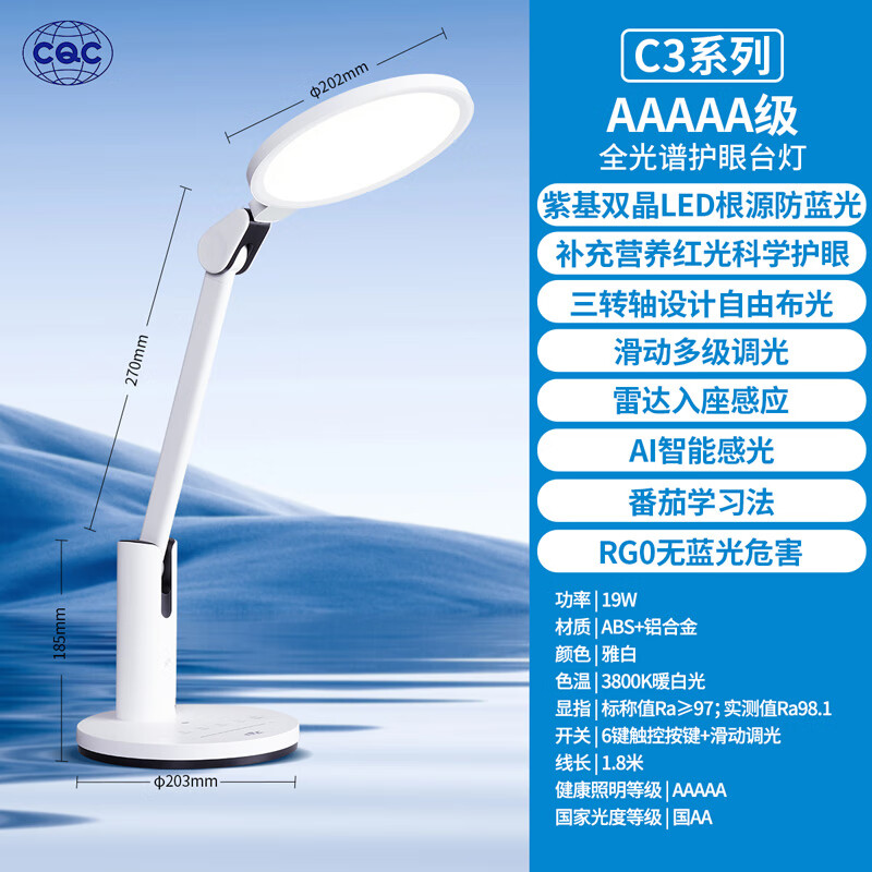 • 雷士(NVC)护眼台灯儿童学习灯智能感光阅读家用学生宿舍书桌全光谱感应灯C3