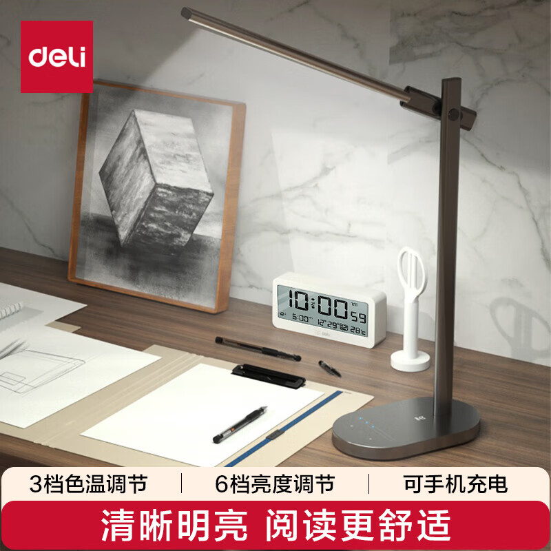 • 得力(deli) 商务可折叠台灯触控六档色温三档亮度 270°转向定时提醒台灯LF201