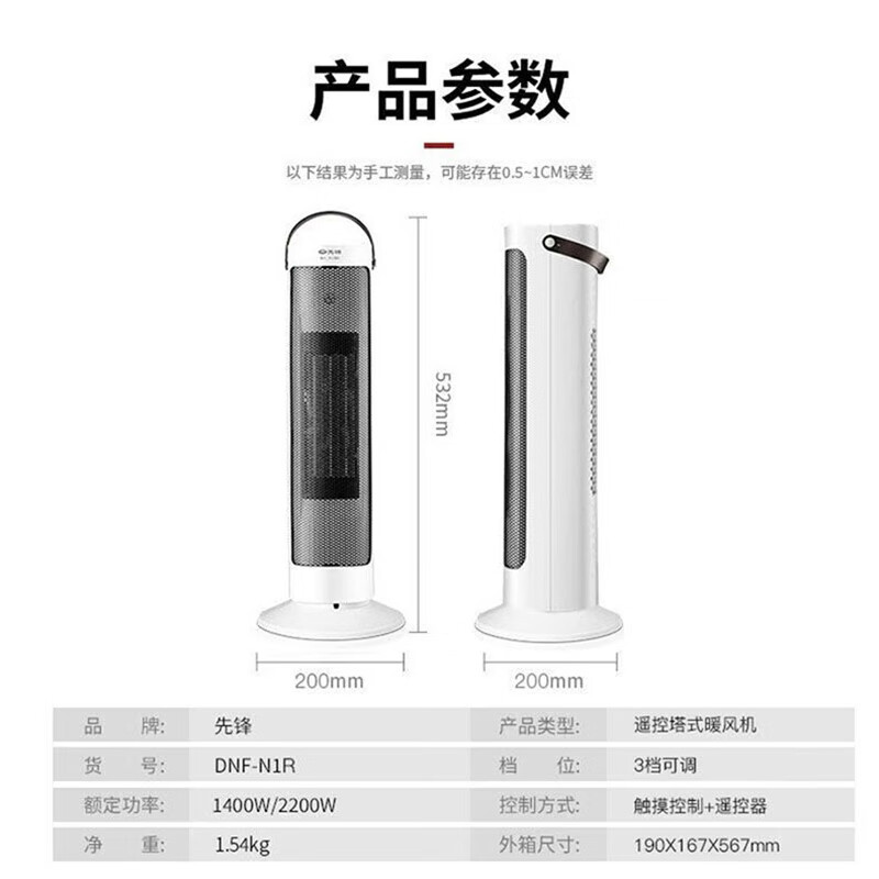 • 先锋(SINGFUN)立式暖风机取暖器家用卧室客厅全屋大面积速热取暖倾倒断电定时电暖器摆头电暖气热风机DNF-N1R