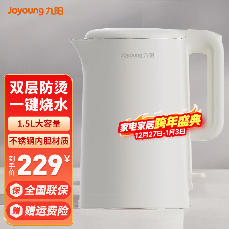 • 九阳电水壶家用不锈钢内胆双层壶体防烫优质温控开水煲烧水壶 1.5L 【白色】K15FD-W6351
