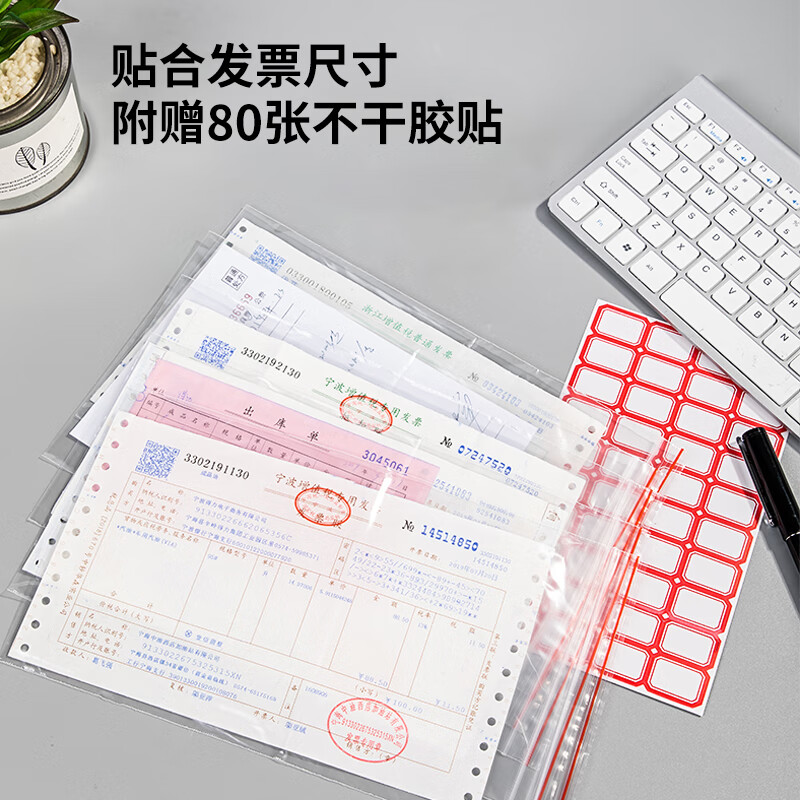 得力(deli)发票专用自封袋26*16cm 加厚透明封口袋100只(附80张标签) 19250