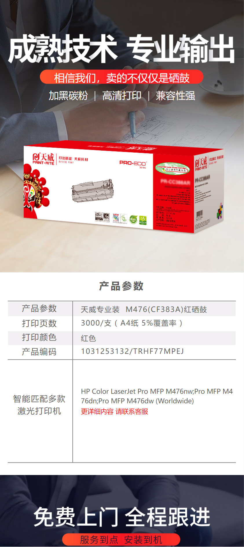 • 天威 CF383A 红色硒鼓带芯片 适用惠普HP MFP M476nw MFP M476dn MFP M476dw