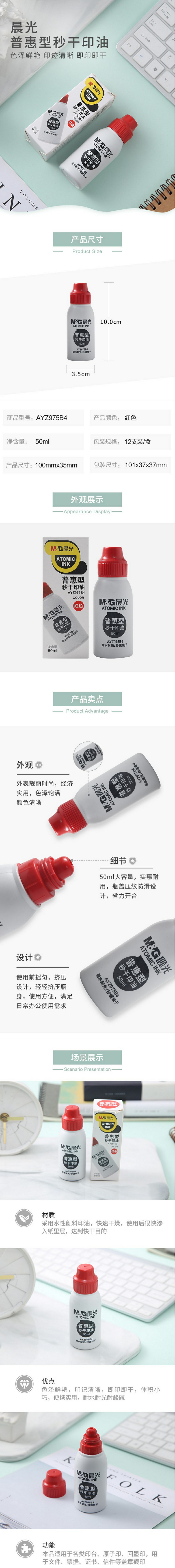 • 晨光 M&G AYZ975B4普惠型秒干印油 50ml 红色