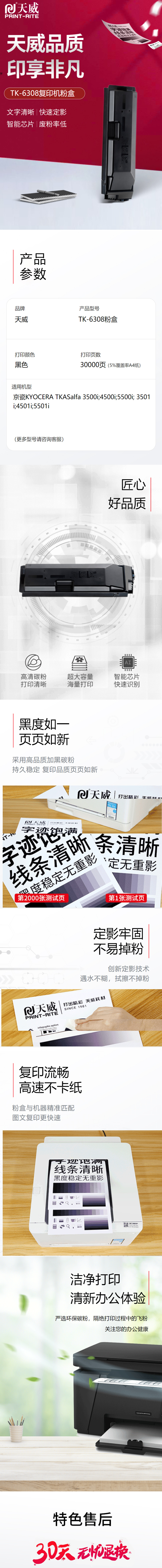 天威 TK-6308粉盒 适用京瓷KYOCERA TKASalfa 3500i 3501i墨粉