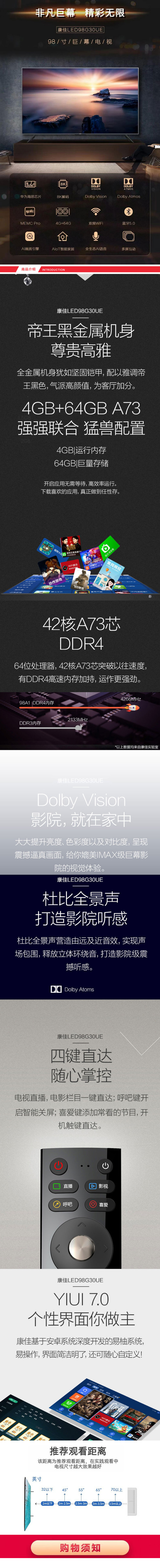 - 康佳(KONKA) LED98G30UE 98英寸大屏平板电视 4K高清智能人工智能电视