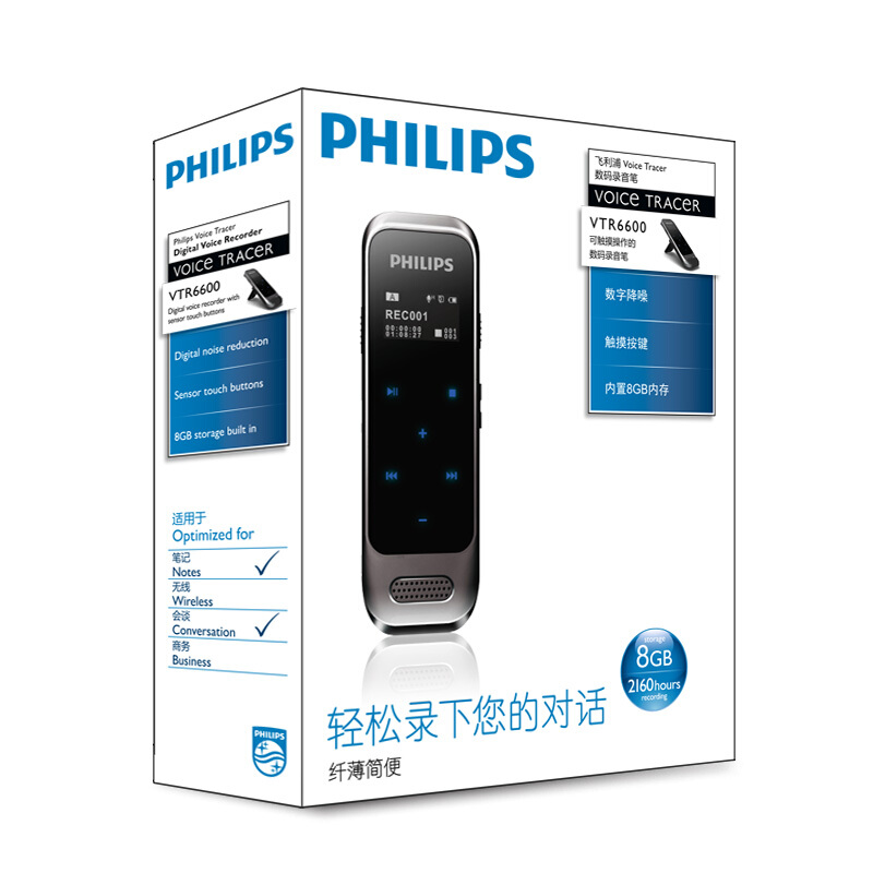 飞利浦(PHILIPS)VTR6600 8GB 学习记录 高清触摸数字降噪录音笔 锖色