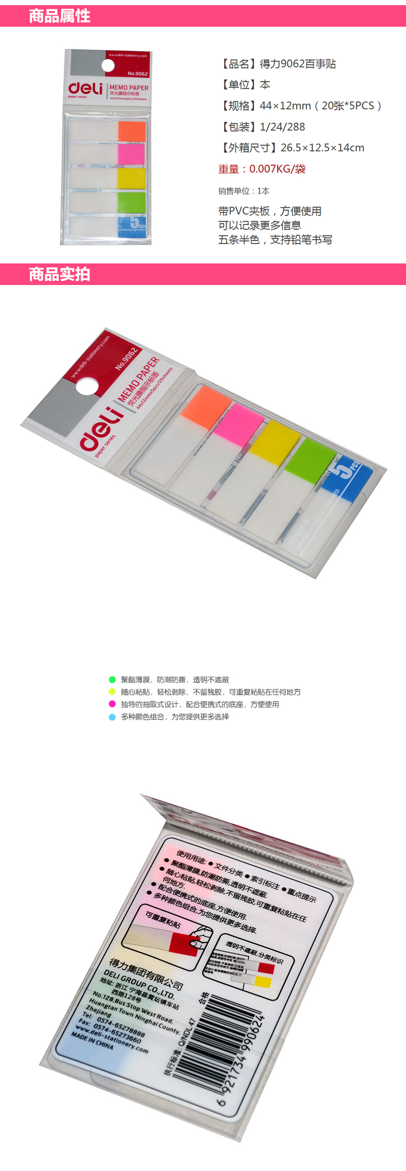 • 得力9062 得力百事贴/5色荧光膜指示标贴(45*12mm)