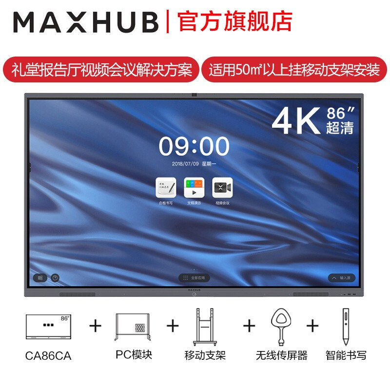 - MAXHUB 智能会议平板CB86CY 86英寸V5经典款 一体机远程视频会议高清显示屏i5(纯PC)+移动支架+传屏器+智能笔