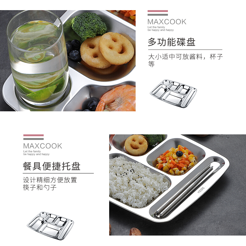 • 美厨(maxcook)304不锈钢餐盘饭盒分格 快餐盘学生餐盒 六格大号加厚MCFT786